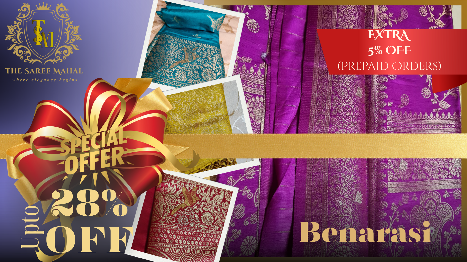 At The Saree Mahal, every saree is a celebration of heritage, craftsmanship, and timeless beauty.From opulent Kanjivarams and regal Benarasis to graceful Paithanis and elegant Tussars, our curated collections honour India’s finest weaving traditions.Each piece is more than an attire — it's a story, a keepsake, and a tribute to the artistry of generations. Whether for weddings, festivals, or everyday elegance, step into a world where every drape is royal, and every woman is celebrated.