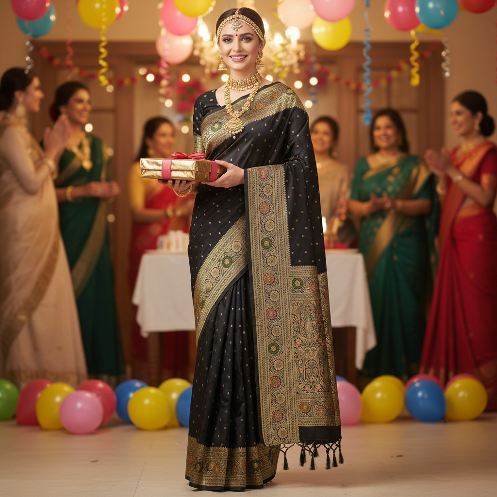 For generations, it has been the saree of choice for brides, royal households, and women of refined taste. Even today, its unmistakable elegance graces red carpets, wedding mandaps, and cultural celebrations alike