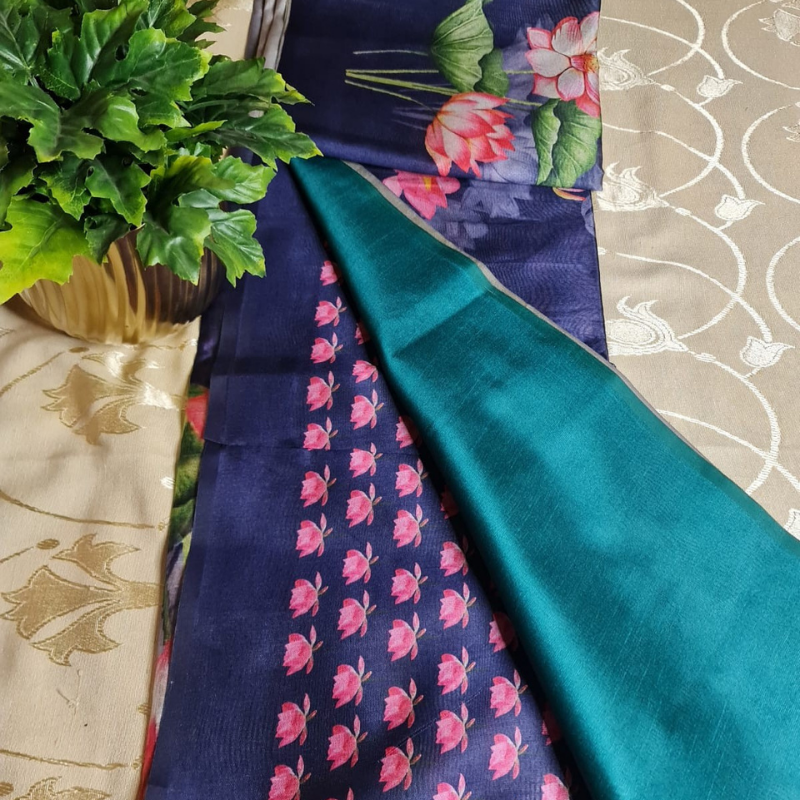 LOTUS Soft Tussar (TSM ST009) : Teal-Grey-Dark Blue