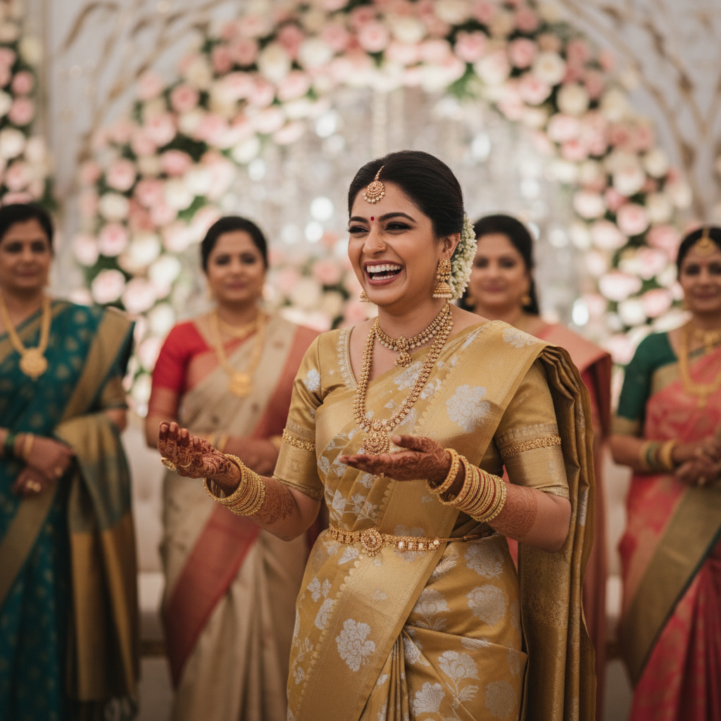A tapestry of tradition and timeless beauty, the Gold Silver Leaves is a regal Kanjivaram masterpiece designed to make unforgettable entrances.