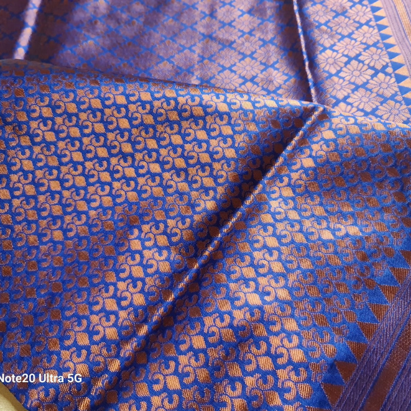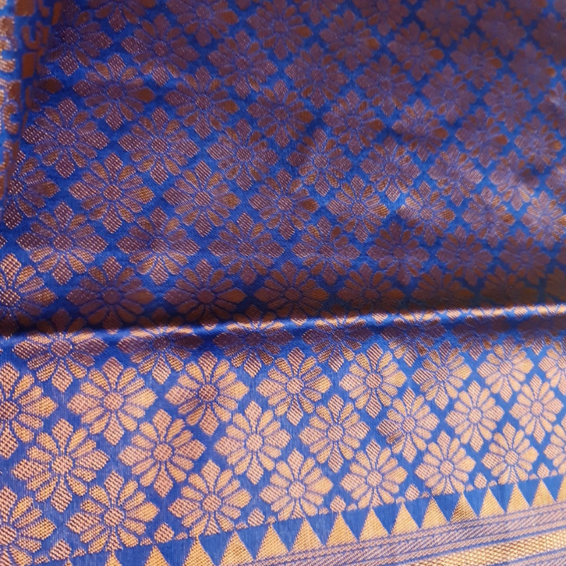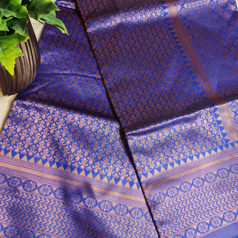 Soft Silk (TSM SS006) : Royal Blue Jacquard (Copper Zari)